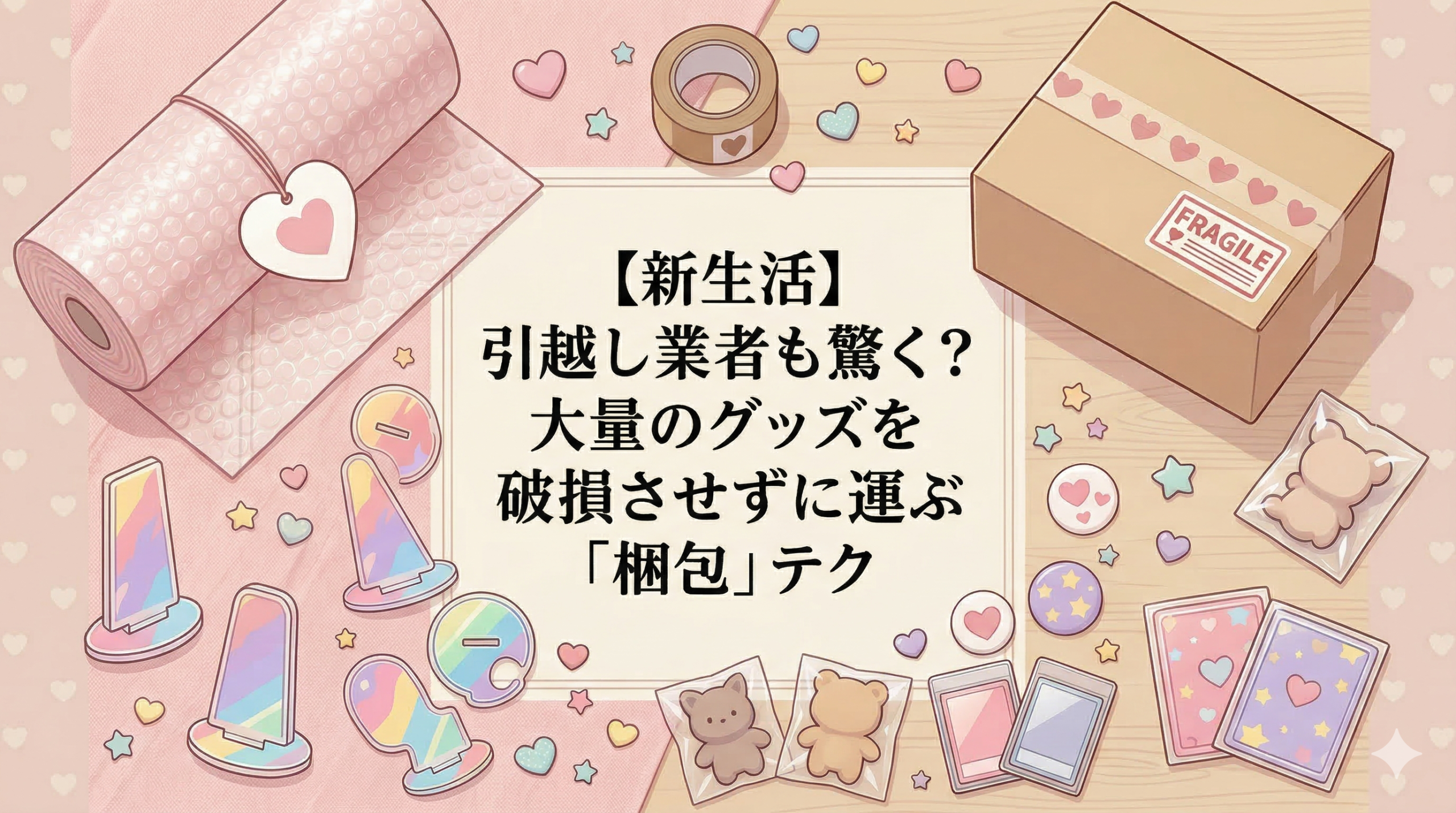 新生活の引越しで、大切な推しグッズを破損させずに運ぶ梱包テクニックを徹底解説。アクスタ、缶バッジ、ポスターなどアイテム別の安全な包み方や、引越し業者に任せる際の注意点、ダイソーや楽天で買えるおすすめ梱包資材まで、オタク必見の情報をまとめました。