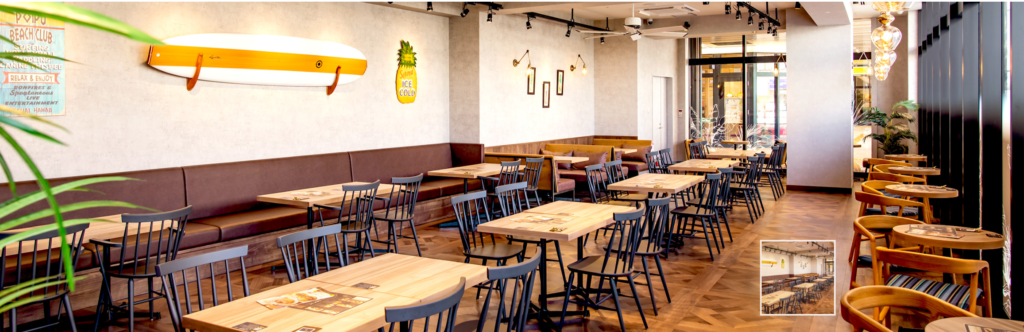パンケーキブームの火付け役ですが、ここはカレーやロコモコなどの食事メニューも充実しています。 店内はおしゃれで開放的。 これから向かうドームの過酷さを忘れて、生クリームたっぷりのパンケーキで糖分を補給しておきましょう。