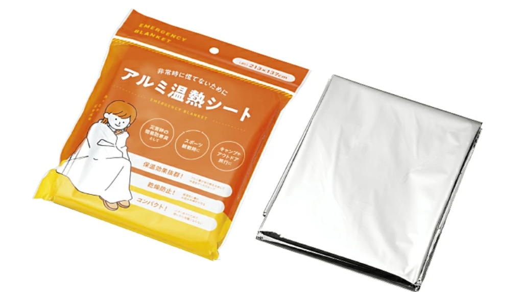 冬のライブの物販待ちなどでも役立つアルミシートですが、災害時にも大活躍します。夜に電車が止まって帰宅困難になったときなど、寒さから体を守るために必ず一つは入れておきたいアイテムです。