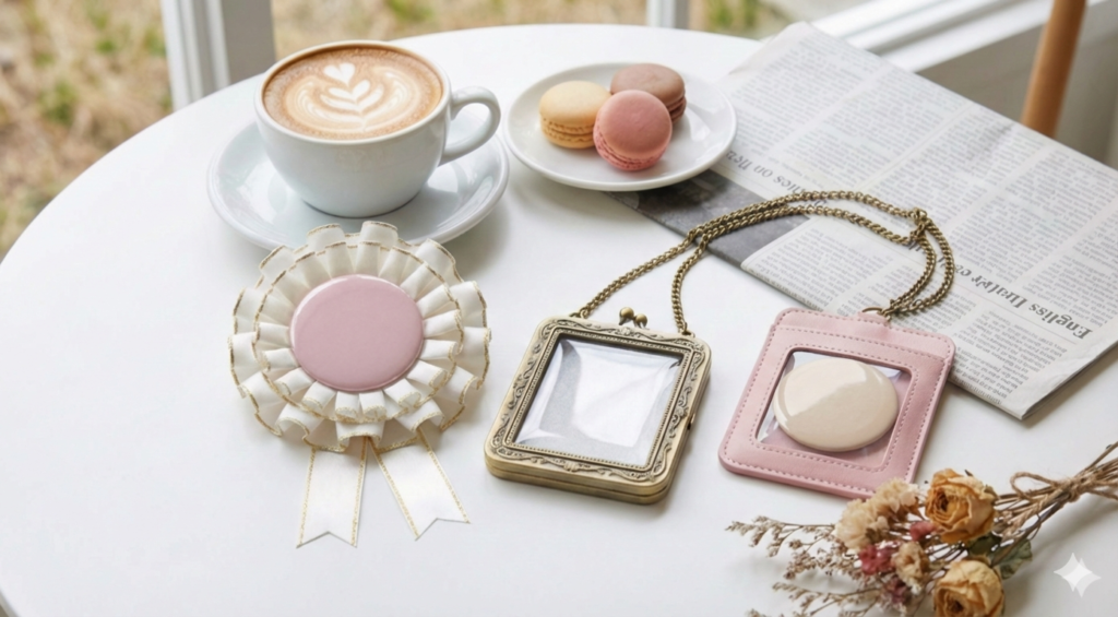 - 保護力と美しさ: 裸で入れるのではなく、厚みのあるアクリルやレースのついたケースに入れることで、傷から守りつつ、バッグにつけた時の「映え」を格上げします。