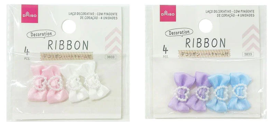 商品名:デコリボン(ハートチャーム付、4個)/ダイソー