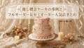 ケーキは早めのオーダーが鉄則! 市販のケーキを自分でデコレーションするのも素敵ですが、クオリティと写真映えを重視するなら、プロにオーダーするのが確実です。人気のデザインは予約がすぐに埋まってしまうので、場所が決まったらすぐに手配しましょう。