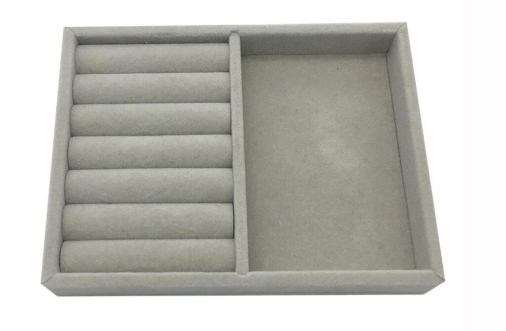 高見えするグレーのベロア・内装トレイ。実は「36番の3段ケース」にシンデレラフィットします。この組み合わせが最強です。