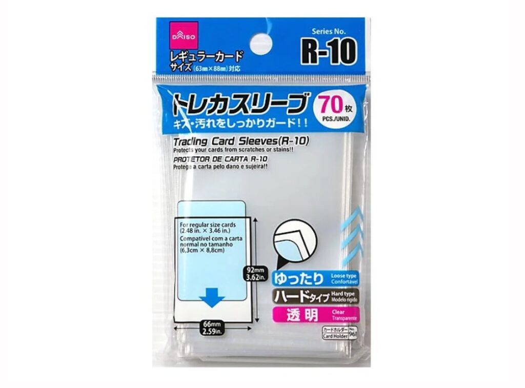 ダイソーの「Rシリーズ」は透明度が高くて推しが曇りません。70枚入りでコスパも最強。