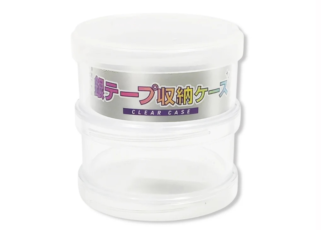 「ビーズタワー」のような丸型クリアケース。銀テを巻いて美しく収納できます。