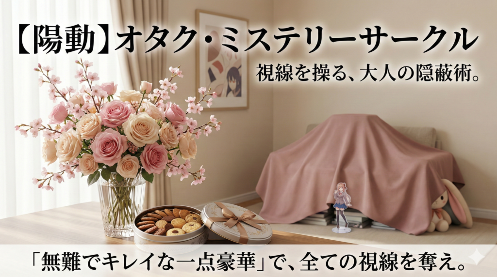 来客の第一声が「わあ、綺麗なお花だね!」「おしゃれなキャンドルだね」になれば、こちらの勝ちです。 彼らの「部屋を観察する」という意識のベクトルを、「特定の安全なアイテム」に向けさせることで、部屋の隅に積まれた「布をかぶせた謎の山」への関心を逸らすことができます。