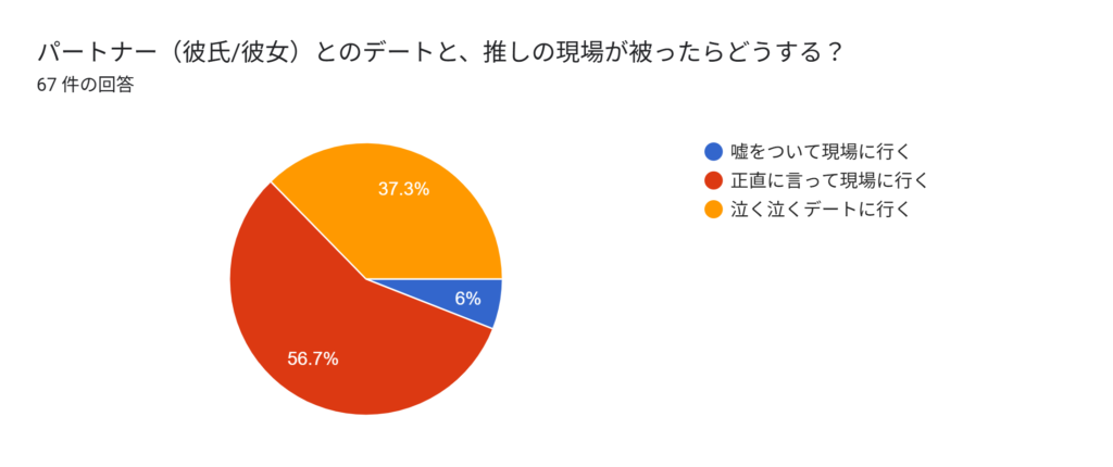 もしも、大切な記念日デートと、絶対に外せない推しの現場(ライブやイベント)が被ってしまったら……。 この究極の質問に対し、オタク女子たちはどう答えたのでしょうか?