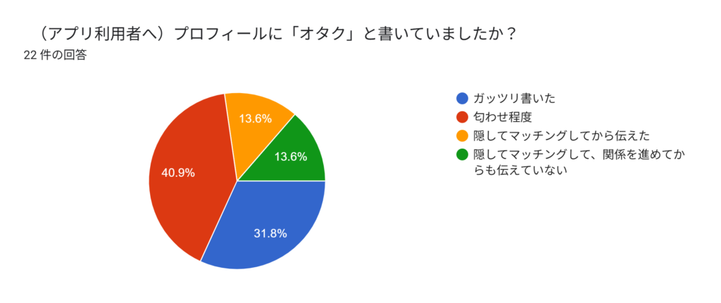 アプリ利用者に「プロフィールにオタクと書いていましたか?」と聞いたところ、以下の3パターンに分かれました。